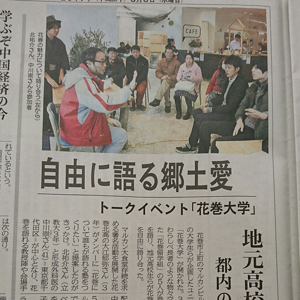 すると、たまたま花巻スポーツランドの白畑さんがいらっしゃったり、たまたまマルカンの一階のカフェが会場として使えるようになったり、たまたま食堂でご飯を食べていた地元の方が来てくれたりした結果、立ち見も含めて20人くらいの人を巻き込んで花巻大学が開催されることになったのです。